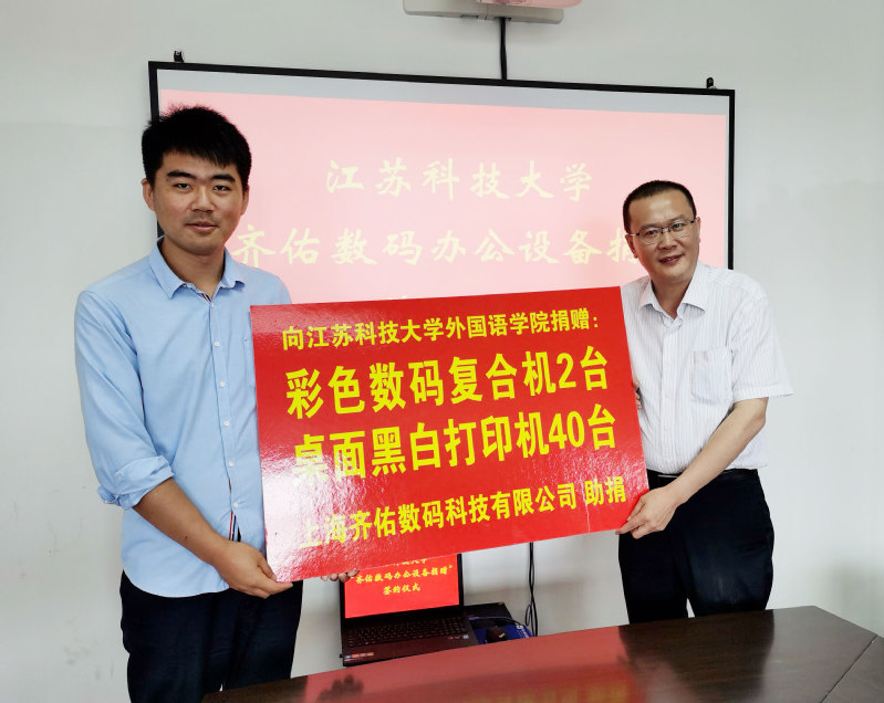 6月16日上午,學校與上海齊佑數碼科技有限公司捐贈辦公印刷設備簽約儀式在外國語學院會議室舉行,這批設備包括彩色數碼復印機2臺、桌面黑白打印機40臺,總價值17萬元。副校長湯建,上海齊佑數碼科技有限公司總經理、2011屆校友常凱出席捐贈儀式,外國語學院領導班子、學校教育發展基金會、對外合作處以及部分師生代表參加捐贈儀式。儀式由對外合作處處長佘建國主持。