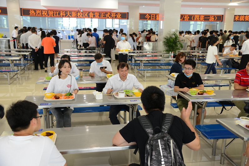 十里長山秀,百畝碧波柔。6月26日,江蘇科技大學新校區西苑食堂揭牌開業,校黨委書記葛世倫、黨委副書記許俊華、副校長姜朋明,鎮江市高校園區建設指揮部副總指揮馬士良,中船第九設計院副院長魯峰,中江國際江科大項目部經理朱偉平,校黨委常委周春燕、劉新波等共同見證揭牌開餐,校黨委副書記許俊華致辭,鎮江市高校園區建設指揮部副總指揮馬士良、中船第九設計研究院副院長魯峰分別講話,副校長姜朋明、中江國際江科大項目部經理朱偉平為西苑食堂揭牌。