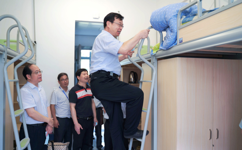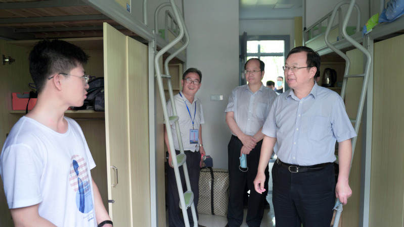 “同學們吃得好不好,住得怎么樣,學習環境又如何?”搬遷到新校區后的學習生活,是學校最牽掛的事。7月4日,1000余名學生全部入住西南宿舍區53號宿舍,校長周南平、黨委副書記許俊華、副校長談鎮來到新校區了解學生搬遷后的學習生活情況,把學生的學習生活始終掛在心上。