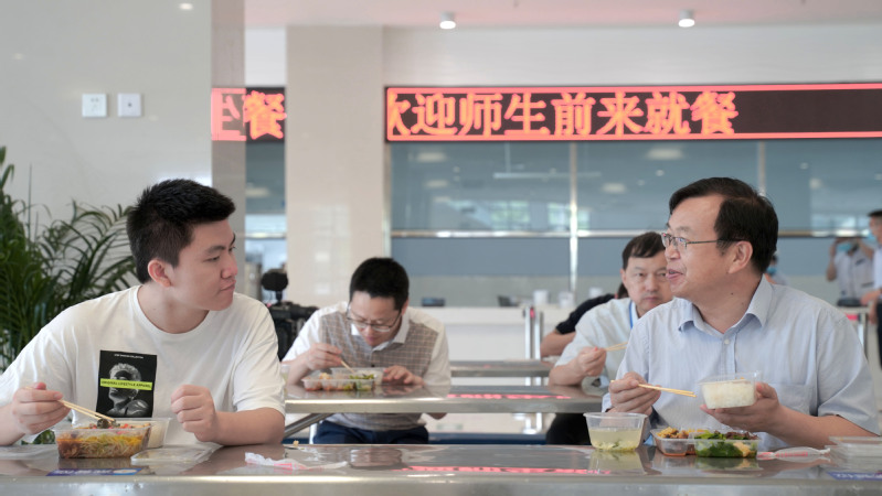 “新校區的條件有沒有達到你的預期?還有什么需要改進的?”在西苑餐廳,校長周南平、黨委副書記許俊華、副校長談鎮等與同學們一起就餐。材料學院高分子材料與工程專業的羅偉奇看到校長如此關心學生特別感動,校長告訴他,雖然新校區現在還沒有完全建設好,后期還會不斷完善,如果還有哪些做得不好,請同學們一定告訴學校,學校都會努力去完善。校長周南平還告訴羅偉奇,在西苑餐廳二樓有一個主題餐廳,到7月底就可以完工,這是一個以船舶為特色的主題餐廳,集學習、就餐、休閑為一體,同學們用完餐還可以自習。聽完校長的話,羅偉奇很期待,他告訴記者,在這樣的環境下學習,可以激發同學們學習的興趣,效果一定很好。