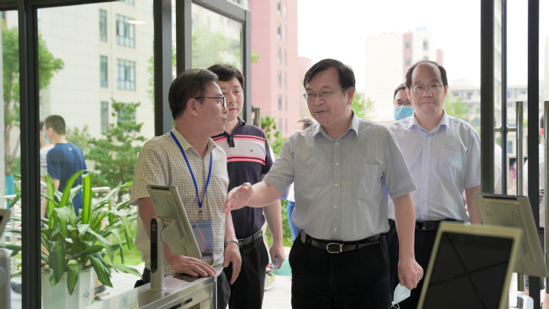 校長周南平、黨委副書記許俊華、副校長談鎮一行來到新校區南門、圖書館、北門、行政樓,了解具體工作進展,不時為建設者點贊,也為新校區如今的臨湖傍山的優美環境點贊,周校長說,“同學們吃得好、住得好、學習環境好是我們最關心的事。”他希望廣大師生員工入駐新校區后,在優美的環境中工作學習,奮力奔跑,跑出江蘇科技大學的加速度,為學校進位爭先做出新的貢獻。