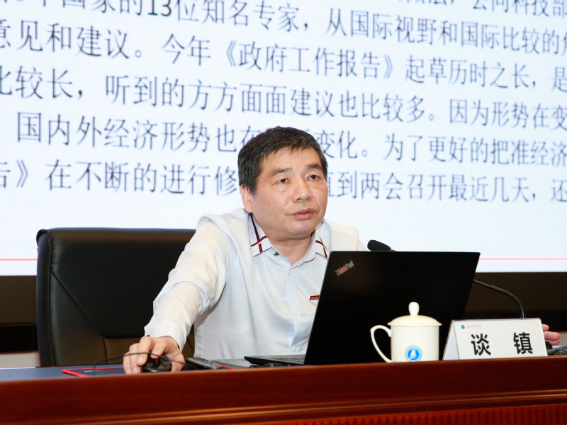 7月6日下午,校黨委常委、副校長談鎮圍繞“兩會精神”與江蘇高質量發展作《乘勢而上開啟全面建設社會主義現代化國家新征程》主題報告。他在報告中從2020兩會八大看點出發,帶領大家學習領會兩會精神,深入分析了當前的經濟形勢,闡發了高速度發展轉向高質量發展的邏輯,并結合自身研究成果給出推進江蘇高質量發展的思路建議。