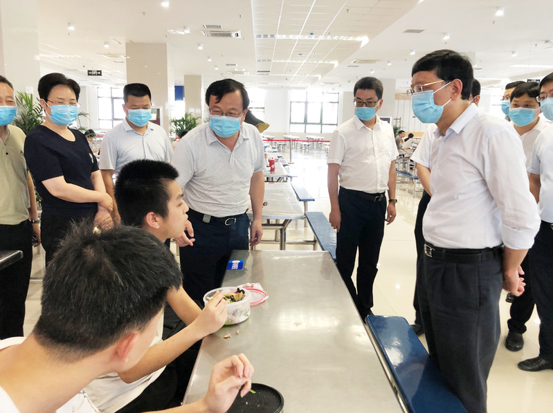 座談會后,潘漫副廳長一行赴我校新校區(qū)進行實地調(diào)研,察看了學(xué)生食堂、學(xué)生宿舍等地,詳細詢問和了解學(xué)生入住新校區(qū)的體驗,特別關(guān)心學(xué)生入住新校區(qū)后的后勤條件保障。