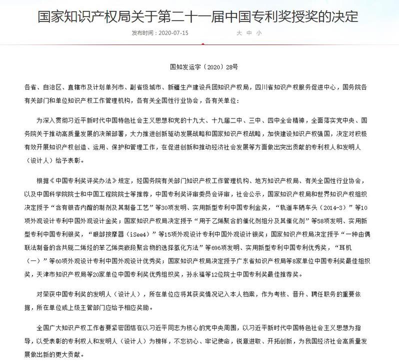 7月15日,國家知識產權局公布了第二十一屆中國專利獎授獎決定,江蘇科技大學獲中國專利獎銀獎。