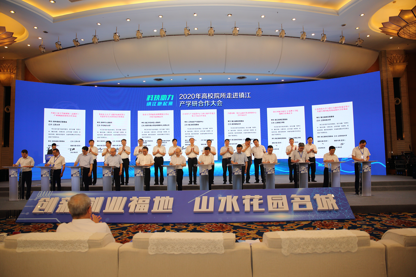 8月5日下午,由江蘇省科技廳和鎮江市政府共同主辦的2020年高校院所走進鎮江產學研大會在鎮江碧榆園金山廳舉行。省政府副省長馬秋林出席大會并講話。我校周南平校長作為特約嘉賓應邀出席大會。俞孟蕻副校長代表我校與鎮江高新區簽訂共建專利導航發展試驗區合作協議。學校科技處、相關學院負責人和教師代表十余人參加大會。