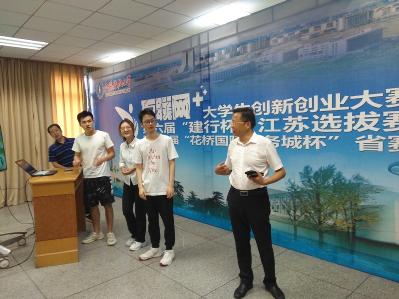 團隊成員、人文學院公共事業管理2017級學生姚藍在團隊里主要負責路演和答辯,印象特別深的就是前幾天在揚州集訓,團隊成員和老師每天都在不停地答辯、修改,一連五天都是早上六七點起床,凌晨一兩點睡覺,老師也是一直陪著學生們一起,不斷改進,都很辛苦。計算機學院2017級物聯網工程專業的李翠鋒在項目中主要負責項目團隊的統籌和技術,回想在揚州集訓的時候,即便連著吃泡面,感覺仍然很好,大家齊心協力比什么都強。