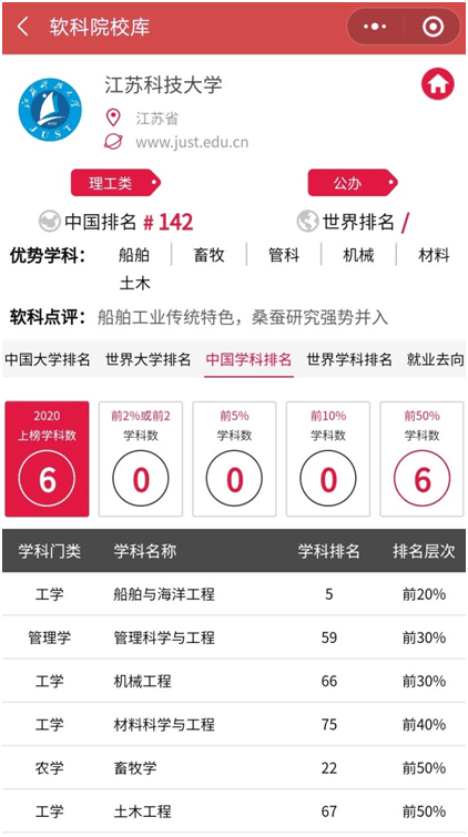 上海軟科10月15日發布的“2020軟科中國最好學科排名”顯示,我校船舶與海洋工程、管理科學與工程、材料科學與工程、畜牧學、機械工程、土木工程6個學科上榜。其中,船舶與海洋工程學科排名位列全國第5位,進入國內前20%;管理科學與工程學科國內排名第59位,排名國內前30%;機械工程學科國內排名第66位,排名國內前30%;材料科學與工程學科國內排名第75位,排名國內前40%;畜牧學學科國內排名第22位,排名國內前50%;土木工程學科國內排名第67位,排名國內前50%。