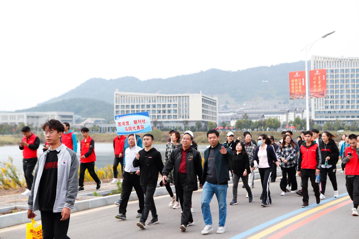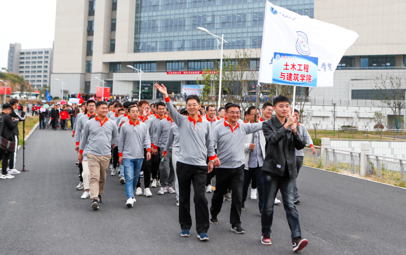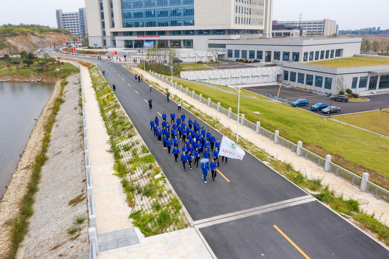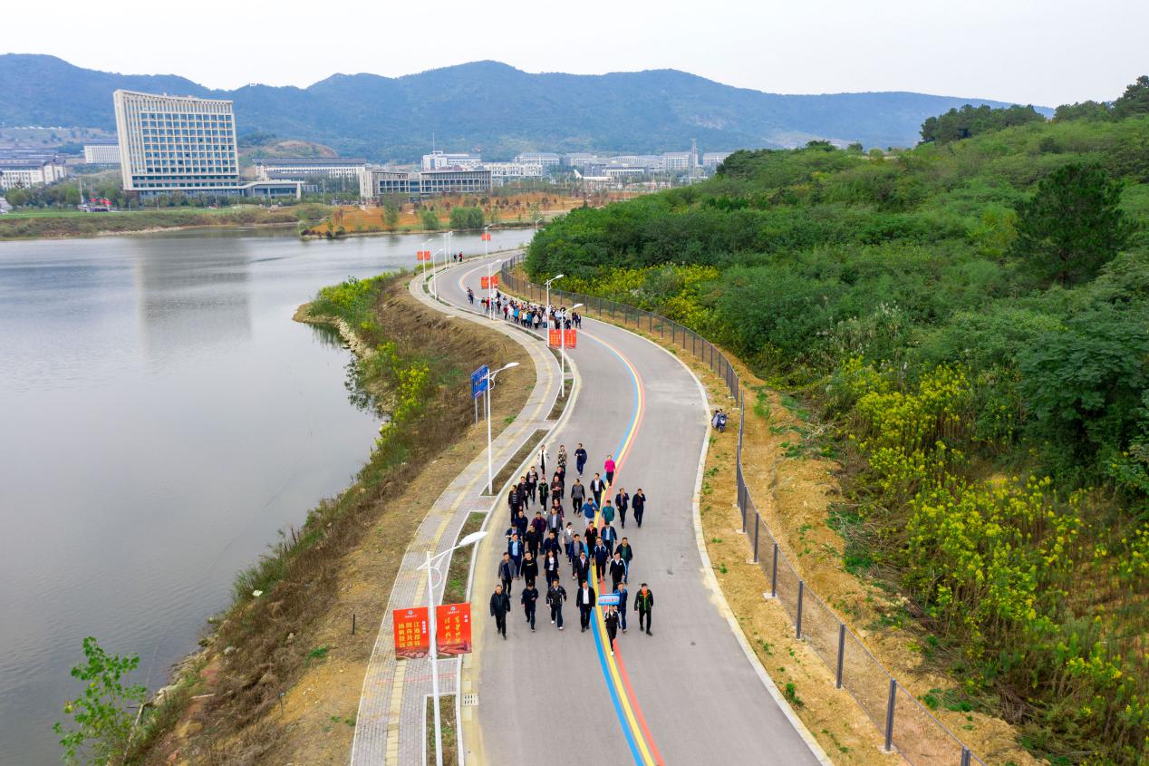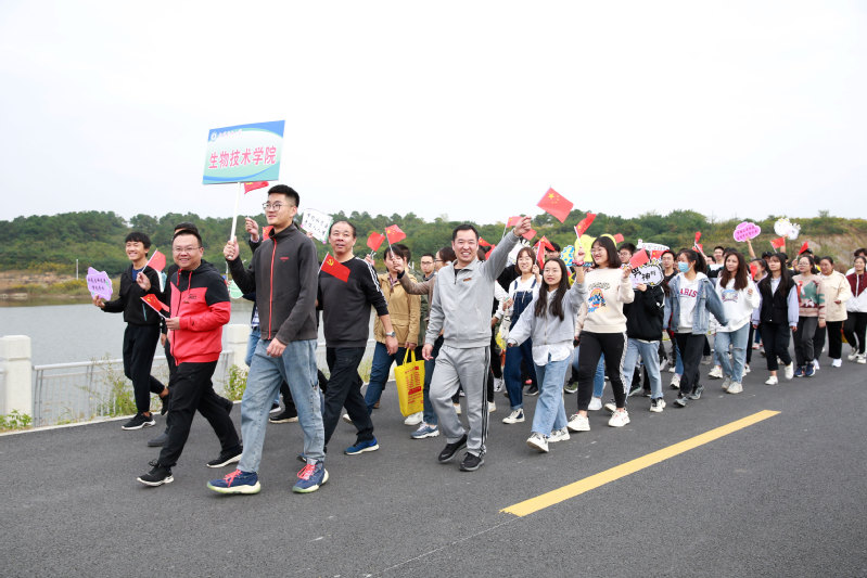 啟動儀式后,學校各黨政機關、教學科研單位、基層黨組織、師生代表組成的18個代表隊近1000名師生參加了環湖健步走活動,師生步伐矯健,精神蓬勃,在健步走運動中體味節能減排的美好風尚。