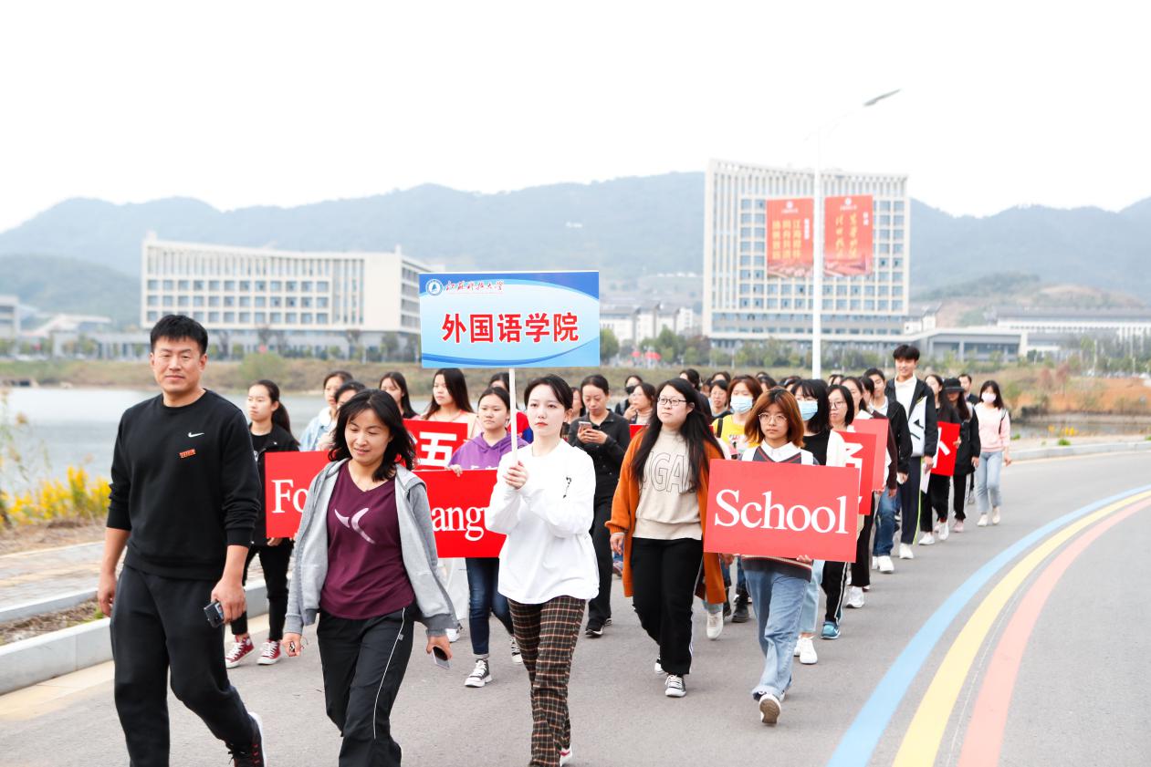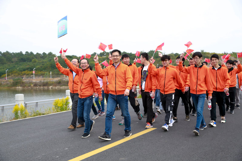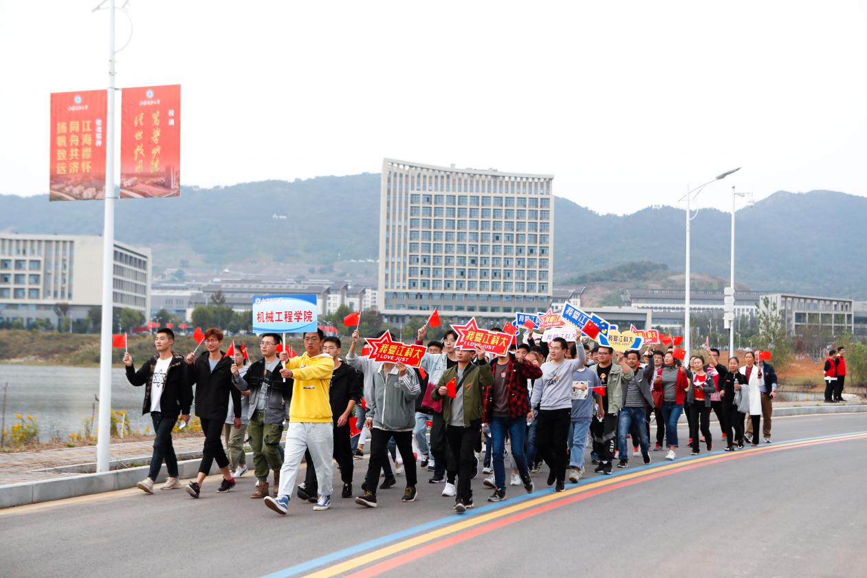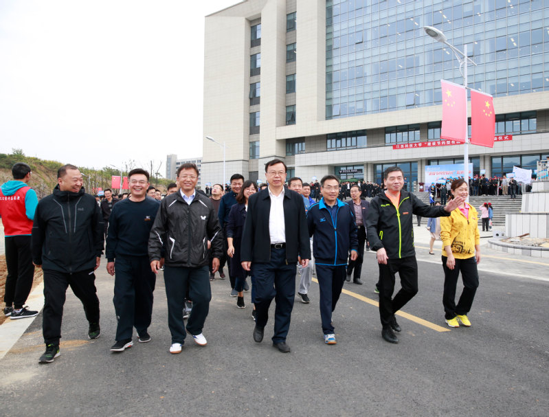 啟動儀式后,學校各黨政機關、教學科研單位、基層黨組織、師生代表組成的18個代表隊近1000名師生參加了環湖健步走活動,師生步伐矯健,精神蓬勃,在健步走運動中體味節能減排的美好風尚。