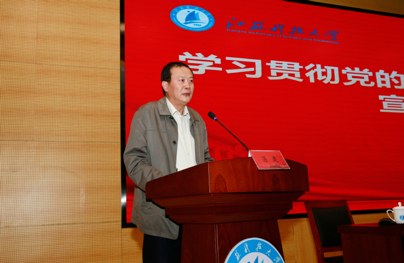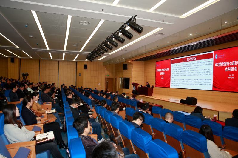 黨的十九屆五中全會于2020年10月26至29日在北京勝利召開,為了深入學習貫徹全會精神, 11月19日上午,江蘇科技大學學習貫徹黨的十九屆五中全會精神首場宣講報告會在圖書館105報告廳舉行。