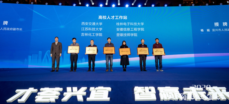 在大會現場,江蘇科技大學與無錫江南電纜有限公司簽訂校企合作協議,宜興市為江蘇科技大學“高校人才工作站”授牌。