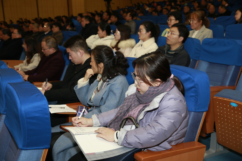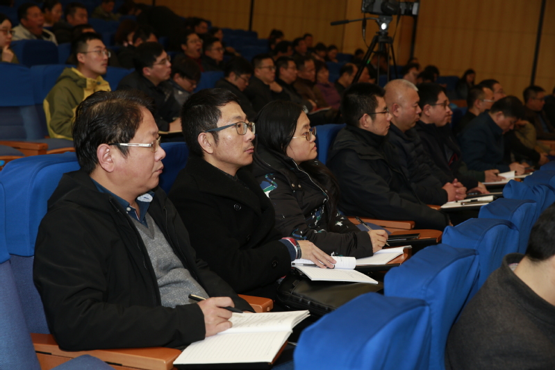 江蘇科技大學(xué)黨委書(shū)記葛世倫主持報(bào)告會(huì)。新華日?qǐng)?bào)社黨委辦、集團(tuán)辦主任劉大穎,鎮(zhèn)江市委宣講團(tuán)成員、市二級(jí)巡視員潘法強(qiáng);江蘇科技大學(xué)校領(lǐng)導(dǎo)、黨委常委,中層干部、科級(jí)干部,馬克思主義學(xué)院教師、輔導(dǎo)員等聆聽(tīng)宣講報(bào)告。