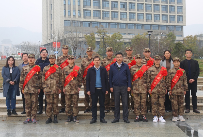 隨后,校黨委書記葛世倫專程和入伍新兵合影留念并親切話別,叮囑同學們到了部隊繼續(xù)學習,肩負起保家衛(wèi)國的重任,早日實現(xiàn)從一名優(yōu)秀大學生向一名合格軍人的轉(zhuǎn)變。12位同學在鑼鼓聲中踏上了當兵的征程。