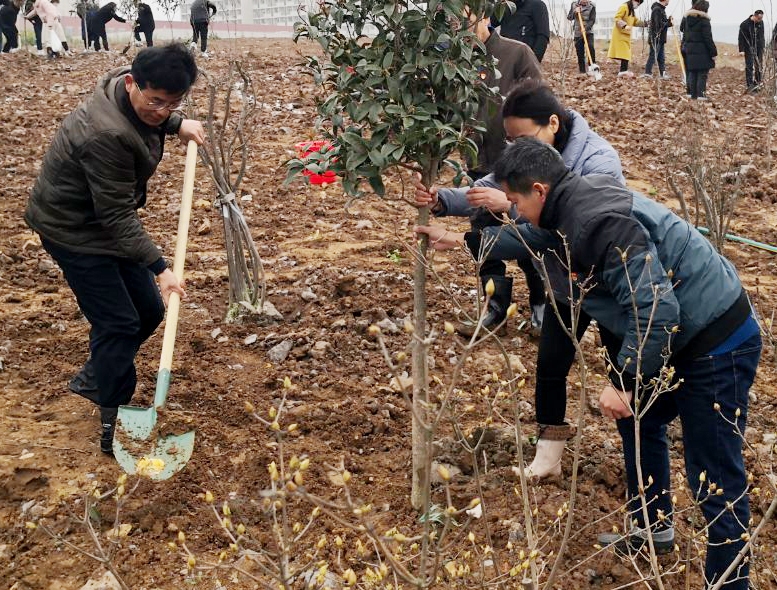 義務植樹黨旗紅,美麗校園育新綠。3月16日下午的長山校區黨旗招展,校黨委副書記許俊華帶領機關黨委、后勤集團黨委近160名黨員揮動鐵鏟培植樹苗,在喜迎黨的百年華誕之際,在搬遷長山校區的第一個春天里,栽種一片綠色也播種一份新希望。