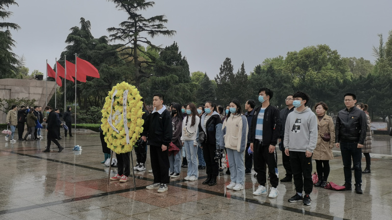 鎮(zhèn)江市烈士陵園革命烈士紀(jì)念碑前,生物技術(shù)學(xué)院蔡興匯與張晴晴同學(xué)作為代表向烈士敬獻(xiàn)了花圈,全體同學(xué)面向紀(jì)念碑默哀一分鐘,深切緬懷革命先烈豐功偉績(jī),寄托哀思。參加祭奠儀式的吳壯同學(xué)表示,“此次活動(dòng)不僅是一次深刻的愛(ài)國(guó)主義教育,更是幫助我們明確肩上責(zé)任,增強(qiáng)黨史學(xué)習(xí),牢固樹立榮辱觀,珍惜前輩們用鮮血和生命換來(lái)的美好時(shí)光,切實(shí)擔(dān)負(fù)起時(shí)代賦予我們的艱巨使命,展現(xiàn)新時(shí)代大學(xué)生風(fēng)采,發(fā)揮黨員先鋒模范作用,樹立堅(jiān)定信心,扎實(shí)工作,感恩社會(huì),奮發(fā)有為”。