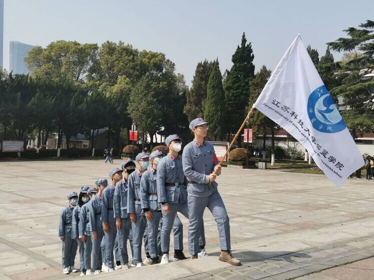 16名優(yōu)秀深藍(lán)學(xué)子身著統(tǒng)一紅軍服裝,列隊(duì)行軍至鎮(zhèn)江市烈士陵園,體驗(yàn)紅軍長(zhǎng)征路程,緬懷革命烈士。紀(jì)念碑前,2018級(jí)預(yù)備黨員蔡志尚同學(xué)還為現(xiàn)場(chǎng)同學(xué)上了一堂生動(dòng)的“信仰公開課”。他說(shuō),“不能忘記,走過(guò)的路;不能忘記,走過(guò)過(guò)去;不能忘記,為什么出發(fā)……要提前規(guī)劃好自己的大學(xué)生活,以革命先輩精神激勵(lì)新時(shí)代青年奮發(fā)有為、不斷進(jìn)取”。