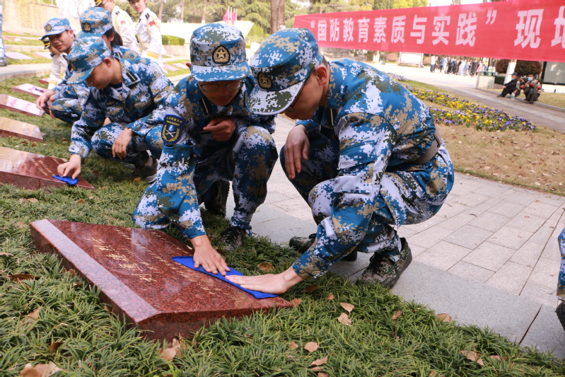 江蘇科技大學(xué)國(guó)防素質(zhì)教育與實(shí)踐課程第一課在鎮(zhèn)江烈士陵園開講,50余名同學(xué)佇立于革命烈士紀(jì)念碑下,校人武部張芳友老師進(jìn)行現(xiàn)場(chǎng)教學(xué),帶領(lǐng)同學(xué)們來(lái)到烈士墓碑前,為革命烈士獻(xiàn)花并清洗墓碑,在自己的戰(zhàn)友墓碑前為同學(xué)們講述了他親身經(jīng)歷過(guò)的戰(zhàn)爭(zhēng),用鮮活的案例再現(xiàn)了革命戰(zhàn)士的英勇頑強(qiáng)、堅(jiān)貞不屈,引導(dǎo)學(xué)生們緬懷革命先烈,傳承紅色精神,強(qiáng)化責(zé)任擔(dān)當(dāng)。
