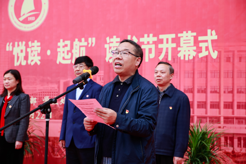 學生代表王云海同學向全校師生發出誠摯的讀書倡議,希望大家能響應讀書節的號召,以書為友,博覽群書,多讀書,讀好書,把讀書當作一種習慣,把讀書作為一種生活方式。