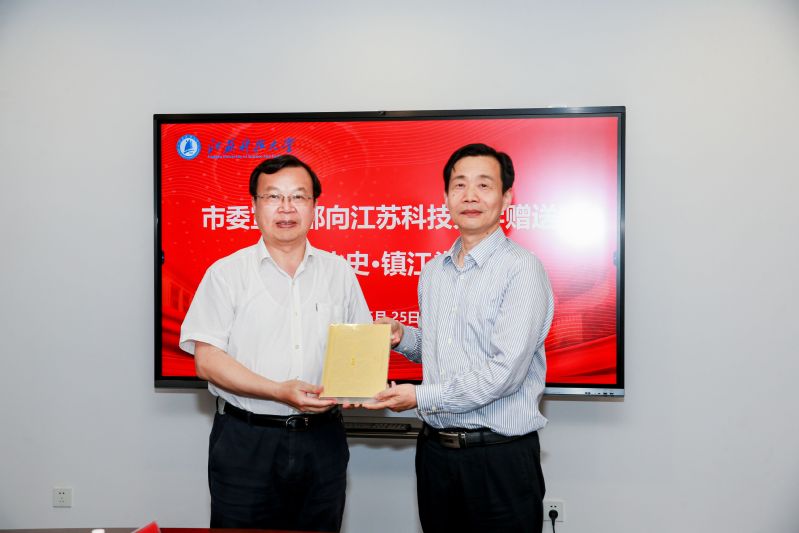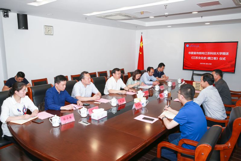 5月25日,鎮江市委宣傳部向江蘇科技大學贈送《江蘇地方文化史·鎮江卷》儀式在學校八樓會議室舉行,鎮江市二級巡視員、《江蘇地方文化史·鎮江卷》主編潘法強向校長周南平贈送書籍。