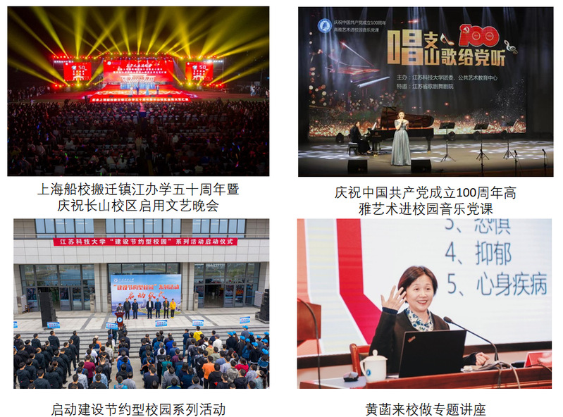 大力弘揚“江海襟懷 同舟共濟 揚帆致遠”的“船魂”精神,不斷提升“船魂”精神凝聚力。舉辦“我和我的祖國”“永遠跟黨走,唱響科大夢”師生大合唱、上海船校搬遷鎮江辦學50周年文藝晚會、節約型校園建設等活動,不斷增強廣大干部師生員工對學校文化的認同感和歸屬感,激發廣大師生為建設“國內一流造船大學”做出新貢獻。