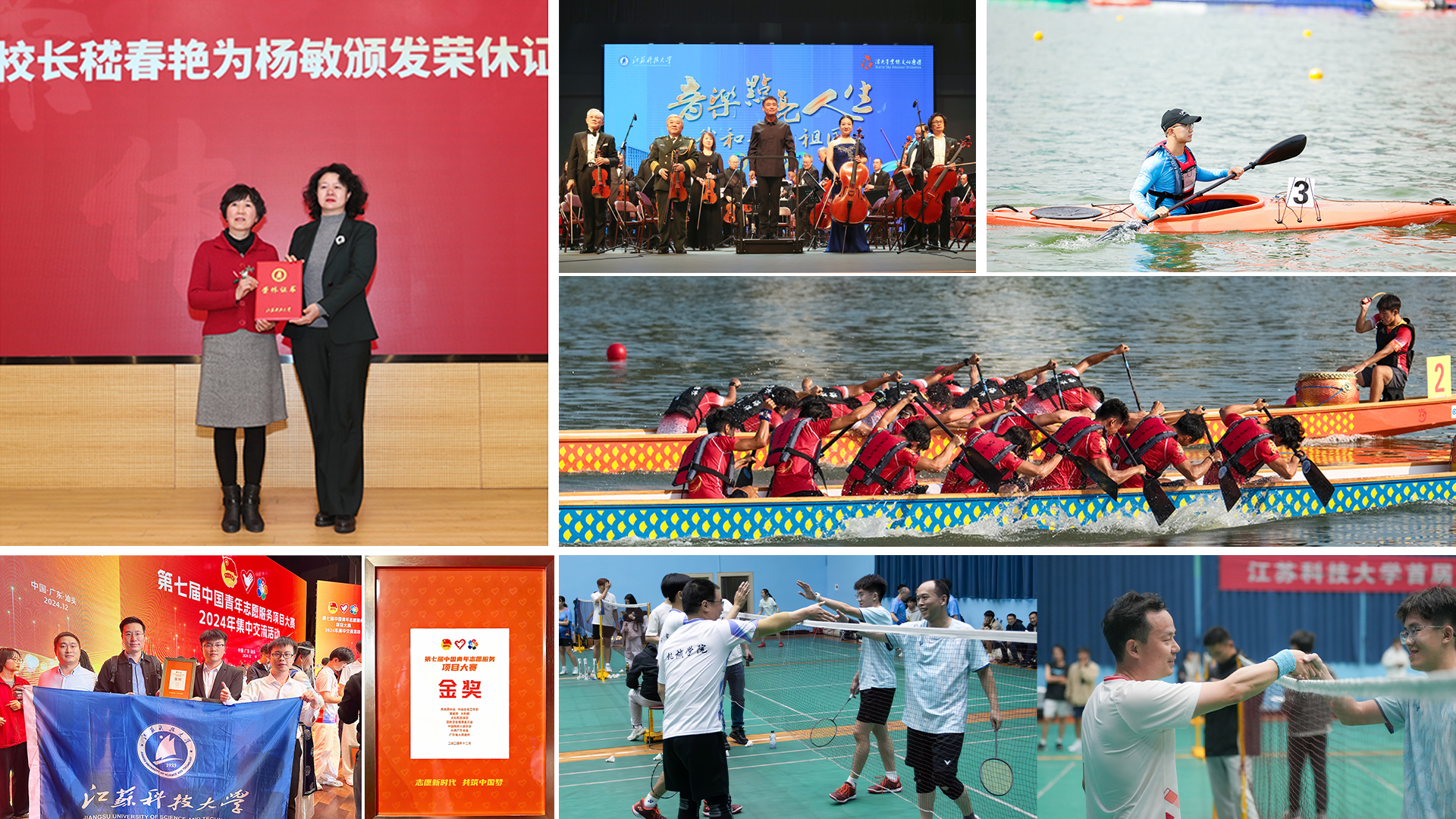 推進(jìn)校園文化建設(shè),以文鑄魂、以文育人、以文化人,讓校園成為堅(jiān)定大學(xué)生文化自信的前沿陣地。滿(mǎn)天星業(yè)余交響樂(lè)團(tuán)走進(jìn)校園,舉辦首屆“深藍(lán)杯”師生羽毛球聯(lián)誼賽,“‘船’承科學(xué)精神,體驗(yàn)傳統(tǒng)文化”,“初心永摯,致敬芳華”教職工榮休儀式,“情暖科大,多彩‘家’節(jié)”“黨建引領(lǐng)巾幗紅,同心共筑科大夢(mèng)”等系列活動(dòng)。承辦江蘇省大學(xué)生龍舟錦標(biāo)賽,在第7屆全國(guó)大學(xué)生皮劃艇錦標(biāo)賽中首奪金牌,“守護(hù)大江豚影,守望美麗中國(guó)”志愿服務(wù)項(xiàng)目榮獲第七屆中國(guó)青年志愿服務(wù)項(xiàng)目大賽金獎(jiǎng),13個(gè)志愿宣講團(tuán)入選全國(guó)大學(xué)生志愿宣講服務(wù)團(tuán)。
