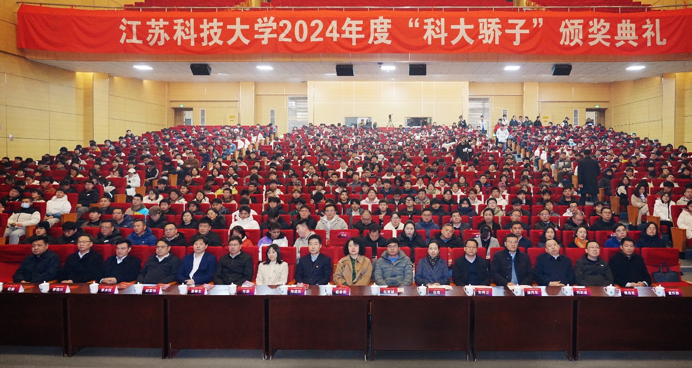 12月12日,江蘇科技大學(xué)在長山校區(qū)船苑劇場舉行2024年度“科大驕子”頒獎典禮,表彰在“志愿服務(wù)、文體藝術(shù)、學(xué)業(yè)發(fā)展、創(chuàng)新創(chuàng)業(yè)”等方面有突出表現(xiàn)的優(yōu)秀學(xué)子。校黨委書記楊建新,校長嵇春艷,校領(lǐng)導(dǎo)潘錦全、任南、胡愛祥、安祥衛(wèi)、李木旺、施偉東出席典禮,我校2001屆校友、中船黃埔文沖船舶有限公司總經(jīng)理助理、人力資源部部長許燕,“夢想”號副總建造師、2010屆校友、中船黃埔文沖船舶有限公司船海事業(yè)部總裝一部副部長伍常斌,學(xué)校相關(guān)職能部門、各學(xué)院負(fù)責(zé)人,輔導(dǎo)員和在校學(xué)生參加典禮。夢溪校區(qū)、張家港校區(qū)及各學(xué)院設(shè)分會場,同步觀看直播。