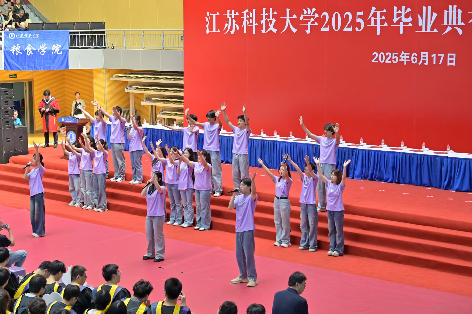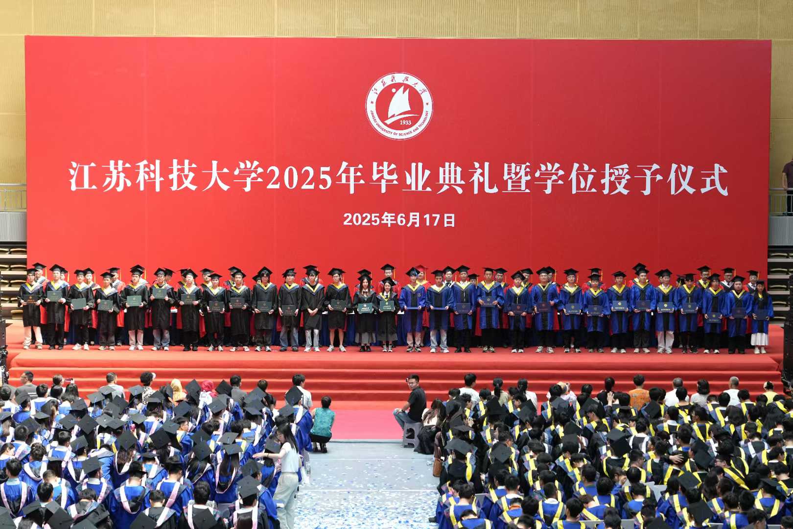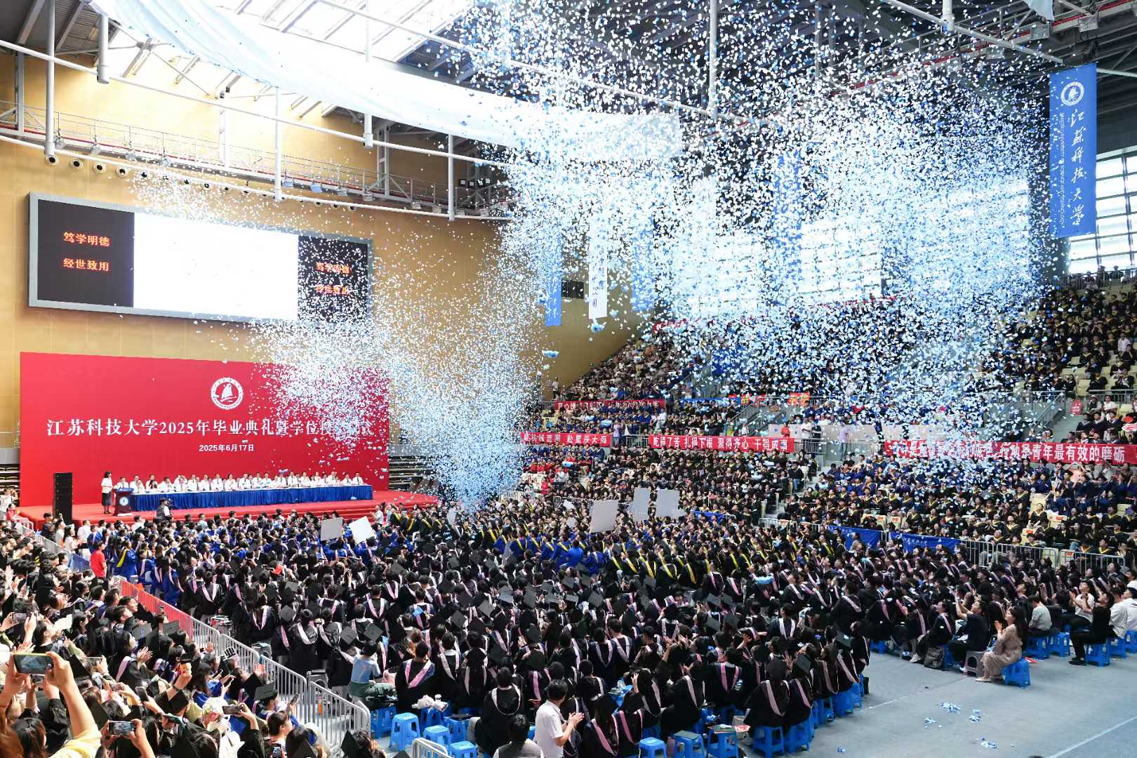 花開盛夏,畢業驪歌如約響起。6月17日上午,江蘇科技大學2025年畢業典禮暨學位授予儀式盛裝啟幕。5510位本科同學,1689位博碩士研究生同學和148位來自34個國家的留學生行撥穗正冠之禮,共上大學“最后一課”,懷揣殷殷囑托和深深祝福從學校啟程,書寫遠航者的傳奇。學校為每位畢業生送上獨家限定畢業禮物——“拼啟未來·磚屬回憶”拼搭文創。當天還是19位畢業同學的生日,學校特別準備了蛋糕,祝他們畢業和生日“雙份”快樂。