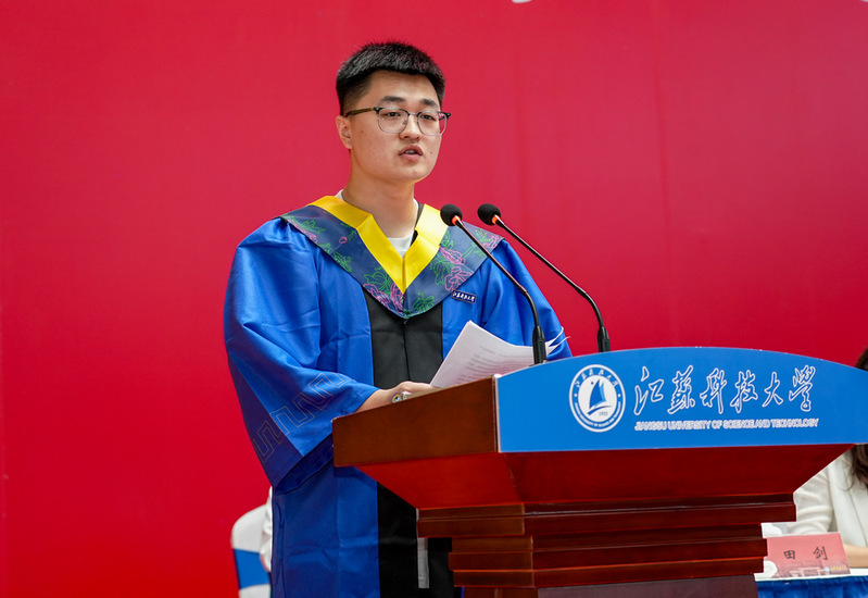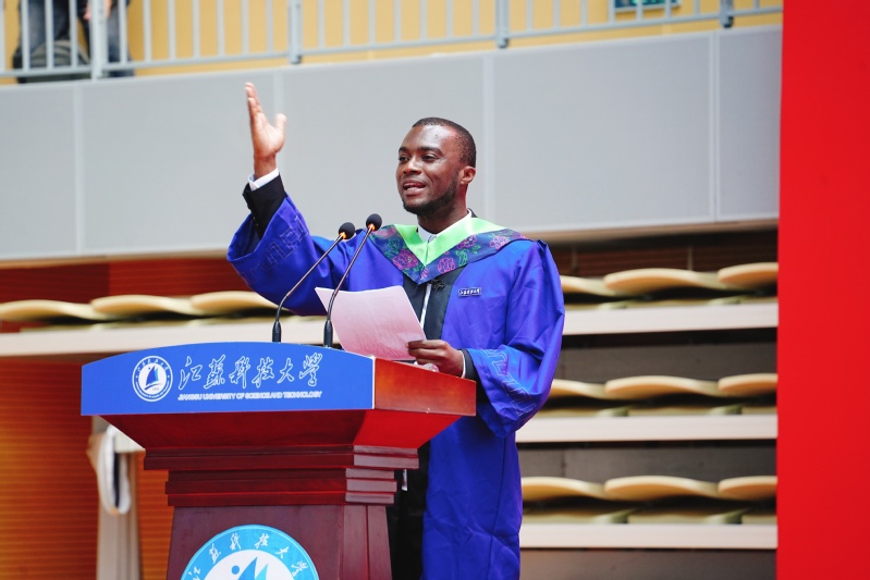 儀式見證成長,感言彰顯擔當。本科生代表、人文社科學院劉祎昕同學表示要勇敢在人生的航道上乘風破浪;留學生代表、來自科特迪瓦的喬納森同學用標準的普通話深情感謝母校培養;碩士生代表、能源與動力學院沈鈺同學分享了踐行興船報國理想的無限展望。