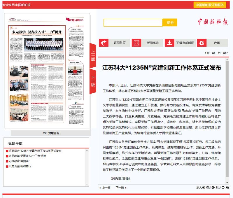 江蘇科大各責任單位負責推進落實“五大黨建賦能工程”各項重點任務。各二級黨組織圍繞“1235N”黨建創(chuàng)新工作體系,系統(tǒng)謀劃、統(tǒng)籌推進各項工作,創(chuàng)新工作方法,開展主題鮮明、形式多樣的黨建活動,增強黨建工作的吸引力和感染力,打造一批黨建標志性成果,全面推動黨建與事業(yè)發(fā)展“一融雙高”。該校“1235N”黨建創(chuàng)新工作體系,積淀著學校90余年忠誠使命的紅色基因,承載著江科大人興船報國的藍色夢想,標志著學校黨建工作邁上了一個新的更高起點。(吳秀霞 雷鋒)
