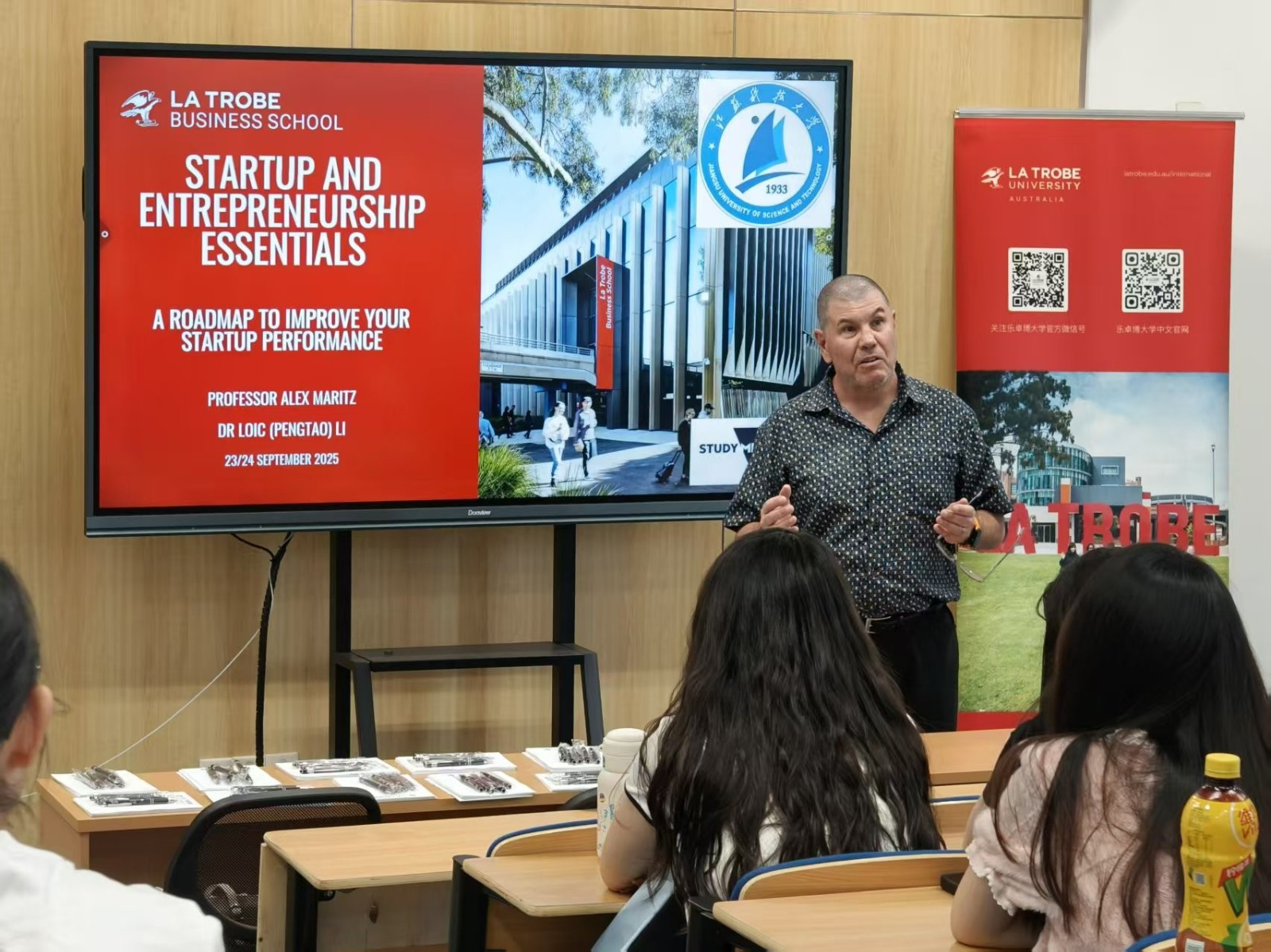 9月23-24日,經濟管理學院精心策劃的“國際商業沖刺營”在長山校區經管院341成功舉行。本次活動特邀澳大利亞樂卓博大學商學院Alex Maritz教授、Loic Li博士,以及澳大利亞維多利亞州政府教育服務經理Gabriel Sun、樂卓博大學大中華區域總監Ivy Xu、樂卓博大學華東區域經理Sid Liu擔任嘉賓,通過全天高強度、互動式的工作坊,全面提升項目學生的國際商業視野與創新創業能力。本次工作坊共分為兩天,工商管理(中澳合作辦學)項目2024級項目學生分兩批小班參與。為期兩天的工作坊分別由工商管理系教師周瀟和高文陽主持。