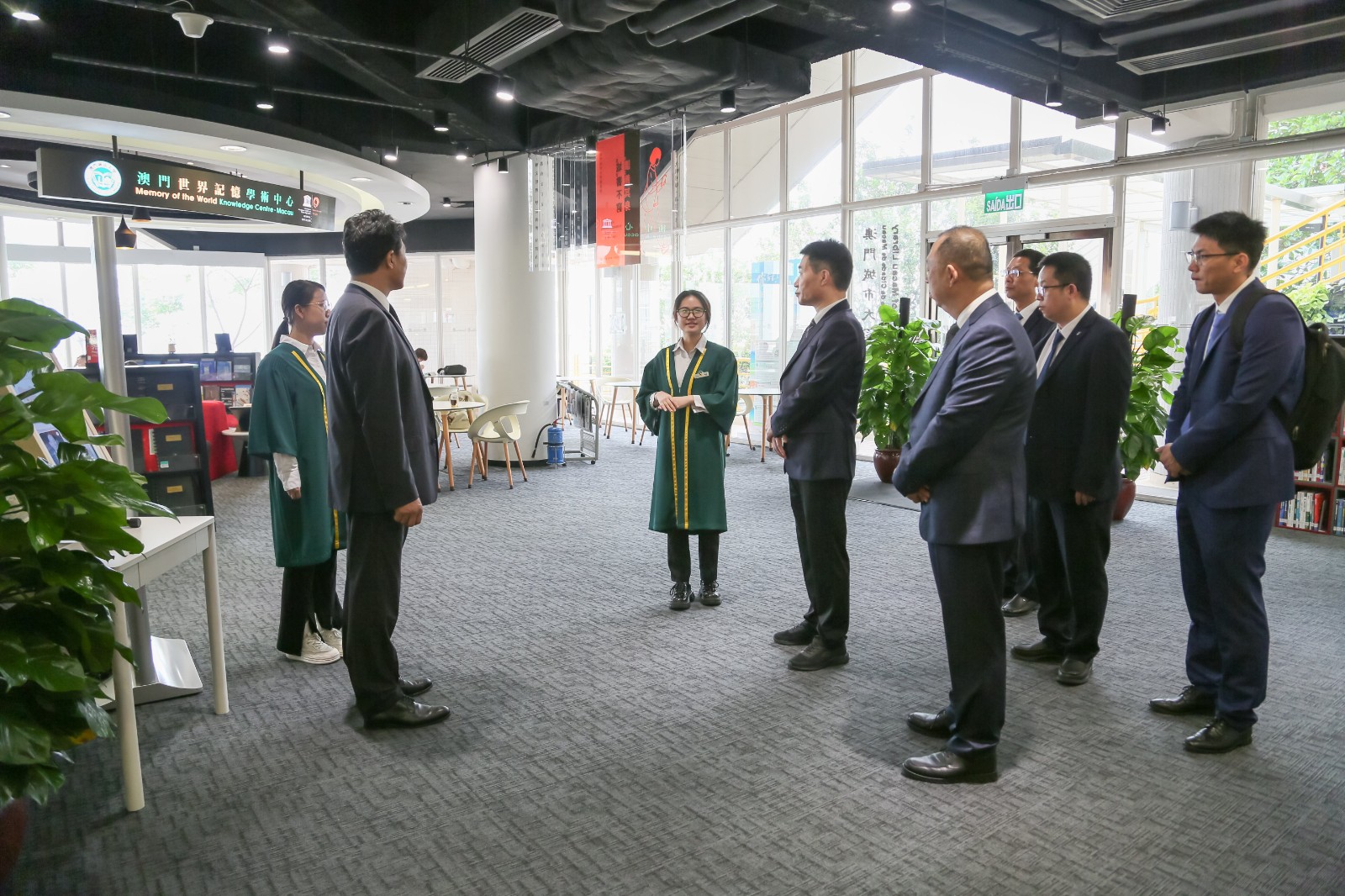 在澳門科技大學,出訪團與李行偉校長、國際學院王婷主任、研究生行政院馮鈞國主任、創新工程學院盧小平主任展開會談,并簽署了合作協議書,雙方一致同意推動學生互訪、課程共建、聯合申報國家級科研項目,共同服務國家科技自立自強戰略。隨后,出訪團調研了該校“全球地圖中的澳門”特展及中藥機制質量全國重點實驗室。