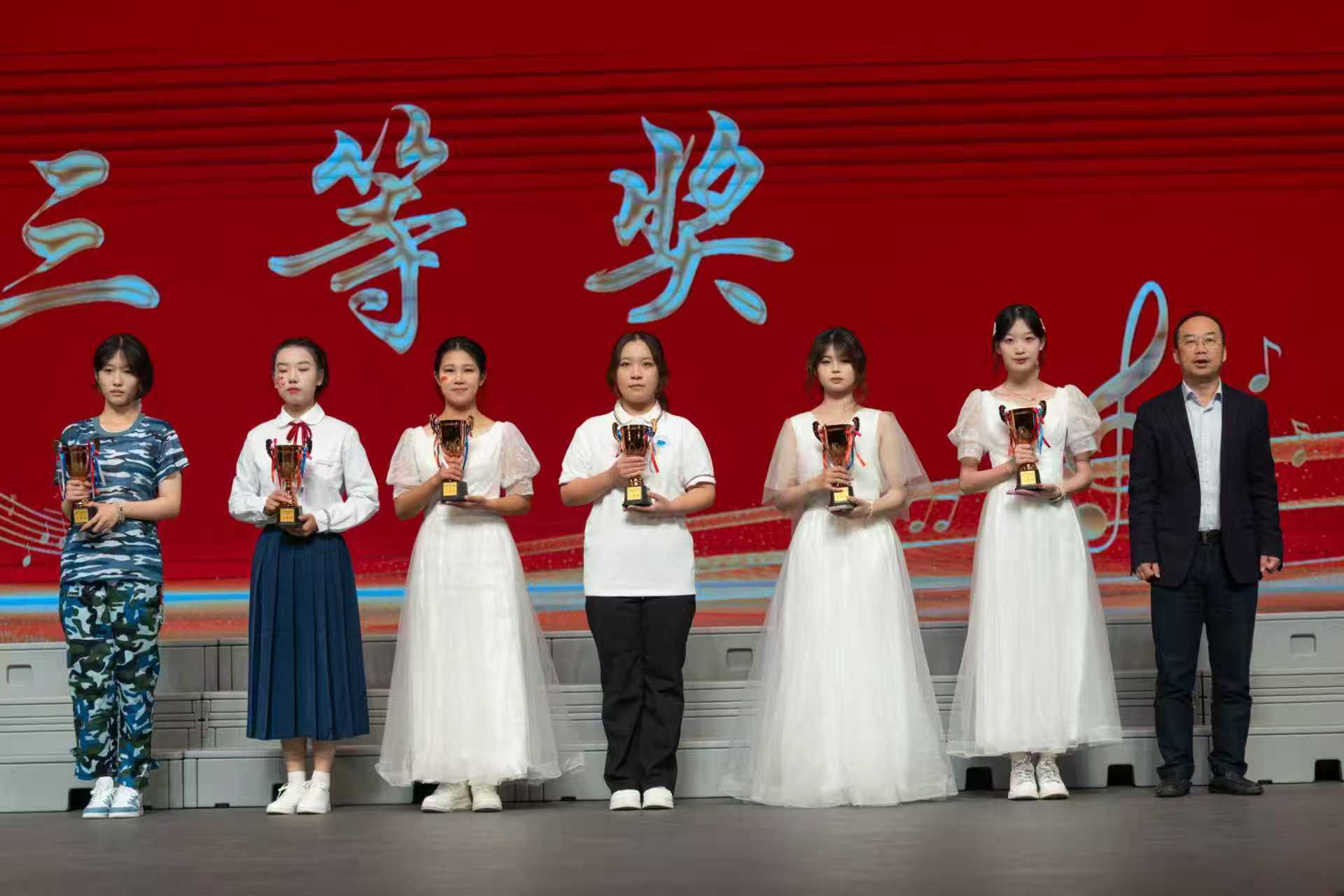 經過激烈角逐,評委團結合現場表現給出最終評分:理學院榮獲小合唱組一等獎,機械學院、經管學院獲二等獎,糧食學院、能動學院、材料學院獲三等獎;經管學院榮獲大合唱組一等獎,材料學院、機械學院獲二等獎,理學院、自動化學院、人文學院獲三等獎。機械學院、經管學院、材料學院、理學院榮獲“優秀組織獎”。出席領導為獲獎隊伍頒發證書和獎杯。