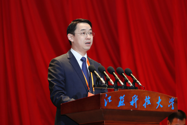 共青團(tuán)江蘇省委副書(shū)記熊俊代表團(tuán)省委向大會(huì)的召開(kāi)表示熱烈的祝賀,對(duì)近年來(lái)江蘇科技大學(xué)共青團(tuán)取得的成績(jī)給予充分肯定。他指出,江蘇科技大學(xué)團(tuán)委在學(xué)校黨委的正確領(lǐng)導(dǎo)下,把牢為黨育人主責(zé)主業(yè),主動(dòng)順應(yīng)時(shí)代發(fā)展潮流和青年學(xué)生成長(zhǎng)成才需要,深入開(kāi)展信仰公開(kāi)課、青馬工程、挑戰(zhàn)杯競(jìng)賽、大學(xué)生就業(yè)幫扶等品牌項(xiàng)目,引領(lǐng)青年跟黨奮斗的成效更加顯著,服務(wù)青年成長(zhǎng)成才的舉措更加務(wù)實(shí),動(dòng)員青年服務(wù)社會(huì)的行動(dòng)更有成效,團(tuán)組織、團(tuán)干部、學(xué)生會(huì)組織的形象更加清新嚴(yán)實(shí)。他對(duì)江蘇科技大學(xué)共青團(tuán)提出三點(diǎn)希望:一是鑄就政治之魂,引導(dǎo)團(tuán)員青年堅(jiān)定不移聽(tīng)黨話、感黨恩、跟黨走;二是凝聚奮進(jìn)之力,在服務(wù)學(xué)校發(fā)展和學(xué)生成長(zhǎng)中找準(zhǔn)結(jié)合點(diǎn)、切入點(diǎn)、著力點(diǎn);三是筑牢立身之本,不斷保持和增強(qiáng)團(tuán)學(xué)組織政治性、先進(jìn)性、群眾性。