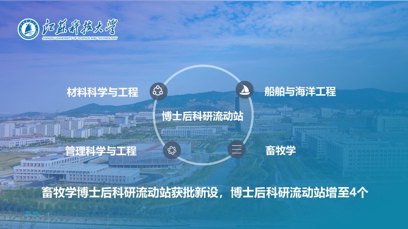 據人力資源和社會保障部、全國博士后管理委員會公布的2023年批準新設博士后科研流動站名單,繼材料科學與工程、船舶與海洋工程和管理科學與工程后,江蘇科技大學獲批增設畜牧學博士后科研流動站,至此學校博士后科研流動站增至4個。這是學校在高層次學科建設和高水平科研平臺建設方面取得的新突破,進一步完善了人才與師資培養體系,是學校貫徹落實人才強校戰略的重要成果。自2015年開始招收博士后以來,學校持續推進各學科人才高地建設,使博士后流動站成為學校培養創新型青年人才的主要基地和師資選拔的重要途徑。
