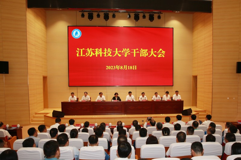 8月18日上午,江蘇科技大學召開全校干部大會,宣布省委關于校領導班子調整的決定。省委組織部副部長季振華,省委教育工委副書記潘漫出席會議并講話。新一屆校領導班子致力帶領全校上下擔當實干、穩中求進,堅定走好高質量發展之路,為中國式現代化江蘇新實踐貢獻江科大力量。校黨委書記周南平作表態發言,指出將深入學習習近平新時代中國特色社會主義思想,堅定正確的辦學方向;履職盡責、科學謀劃,推動高水平大學建設與發展;勤政廉政,打造風清氣正、務實肯干的辦學氛圍,在服務國家重大戰略需求和江蘇省“走在前、做示范”光榮使命中奮力作為。校長嵇春艷作表態發言,指出將矢志不渝保持特色發展、接續奮斗深耕內涵建設,努力以高水平科技成果、高水平產教融合、高水平文化傳承創新、高水平大學治理,為在推進中國式現代化中走在前做示范作出應有貢獻。