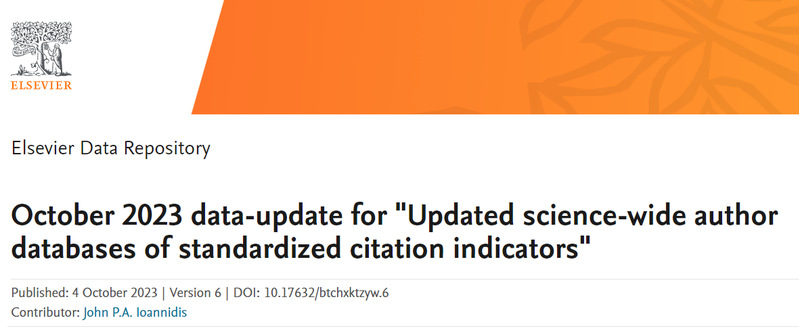 近日,美國斯坦福大學發布2023年全球前2%頂尖科學家榜單(World’s Top 2% Scientists 2023),并在Elsevier旗下Mendeley Data發布(October 2023 data-update for “Updated science-wide author databases of standardized citation indicators”)。學校22位教師入選榜單,其中楊習貝、施偉龍2位老師入選雙榜單,另外20名教師入選“2023年度科學影響力排行榜”。該榜單從近七百萬科學家中,篩選出世界Top2%的科學家,數據包括22個領域和174個子學科。榜單分為“終身科學影響力排行榜(1960-2023)”和“2023年度科學影響力排行榜”。本次榜單于2023年10月4日發布,統計數據時間節點為1960-2023年。