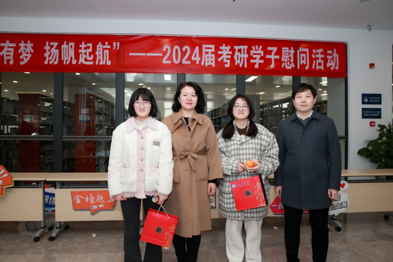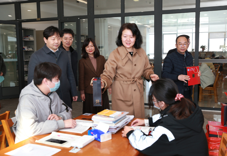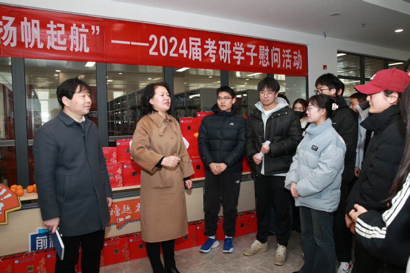 助力考研夢(mèng),情暖學(xué)子心。12月20日上午,校長(zhǎng)嵇春艷,黨委常委、副校長(zhǎng)胡愛(ài)祥,黨委常委、宣傳部部長(zhǎng)周春燕,校辦、學(xué)生處、圖書(shū)館等職能部門(mén)的負(fù)責(zé)人共同走進(jìn)圖書(shū)館考研自習(xí)室慰問(wèn)正在復(fù)習(xí)備考的2024屆考研學(xué)子,為即將踏上考研“戰(zhàn)場(chǎng)”的學(xué)子們送去勉勵(lì)和“暖心加油包”。