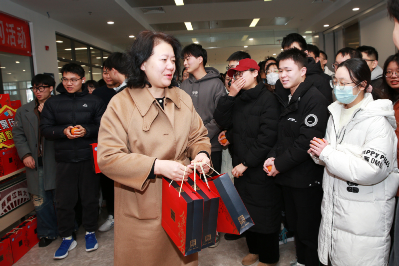 慰問(wèn)現(xiàn)場(chǎng),嵇校長(zhǎng)一行在圖書(shū)館為考研學(xué)子們送上“旗開(kāi)得勝,一起加油”的祝福,對(duì)大家為夢(mèng)想而拼搏的堅(jiān)持表示贊揚(yáng)。隨后,與會(huì)領(lǐng)導(dǎo)一同為考研學(xué)子們送上精心準(zhǔn)備的慰問(wèn)禮品,其中包含“橙”功上岸——橙子、考研“旺旺”——旺仔牛奶、輕巧上岸——巧克力和金榜題名禮盒等,每一份禮品都飽含著學(xué)校對(duì)考研學(xué)子的深深祝福和殷切關(guān)懷。