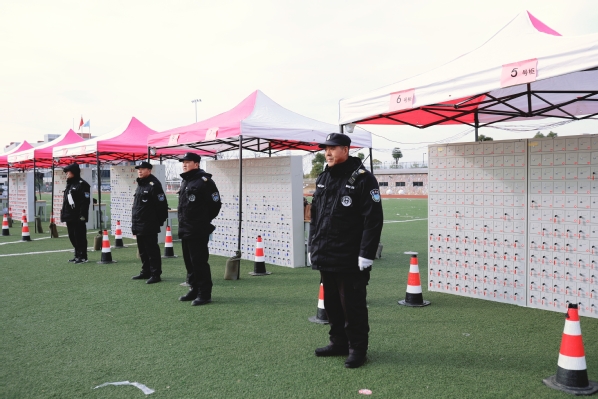 招生辦在學校黨委領導下,與相關部門通力合作,考試期間考點實行封閉區入口和考場入口兩次人工安檢和一次智能安檢門安檢,同時進行人臉識別檢查,確保考生精準快速入場。考場外設置物品置物架,方便考生存放個人物品。學校各部門協同配合,統籌規劃、協調實施各項考務組織工作,考務人員提前到崗,監考人員嚴謹認真,全力實現考試安全、有序進行。