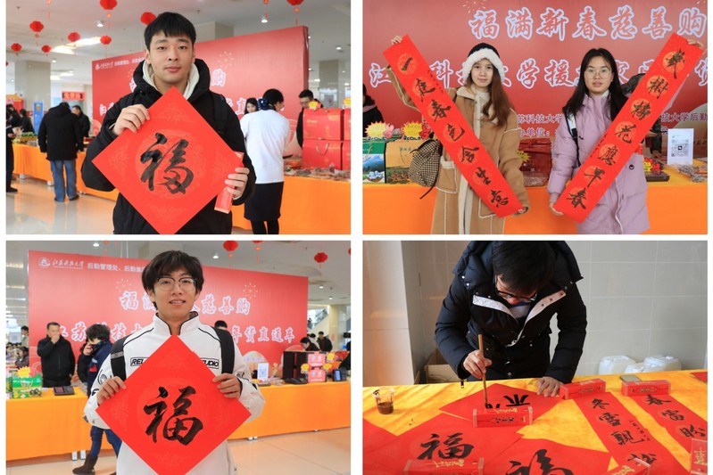 校團委書法協會的蔣宗豪同學在現場揮毫潑墨,書寫了不同字體的“福”和一幅幅寓意美好的春聯,將寫的福字和春聯送給參加活動的師生,把美好的祝福與希望送給他們。當一幅幅散發著清新墨香的春聯拿到手上之時,大家喜悅之情溢于言表,紛紛表示手寫的福字和對聯更有意義。既感受到了我國傳統文化藝術的博大精深,也展示了當代大學生的藝術風采。