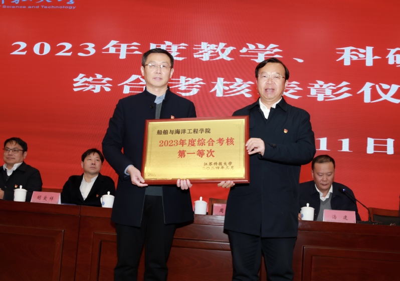 校黨委常委、副校長(zhǎng)潘錦全宣讀了《關(guān)于公布2023年度教學(xué)科研單位考核結(jié)果的通知》,船舶與海洋工程學(xué)院、機(jī)械工程學(xué)院、經(jīng)濟(jì)管理學(xué)院榮獲綜合考核第一等次。