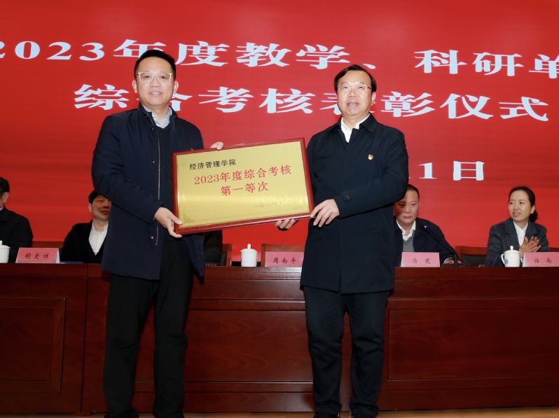 會(huì)議表彰了2023年度教學(xué)、科研單位,黨委書記周南平為第一等次單位頒獎(jiǎng)。