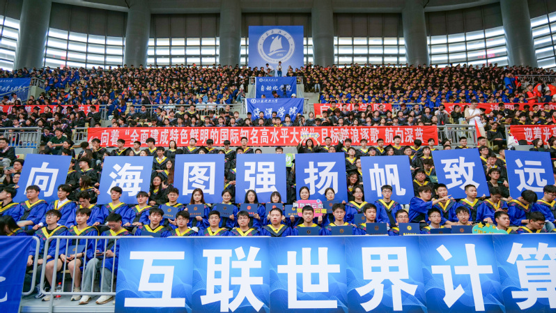 周南平深情寄語畢業生:“畢業是一個節點,標志著純真校園生活的結束和嚴肅社會生涯的開始。有人或許說,將船留在港灣最為安全,但那絕不是我們造船的目的,我們就是要去揚帆遠航,去感受海浪,去站在強國建設、民族復興新征程的最前列!”