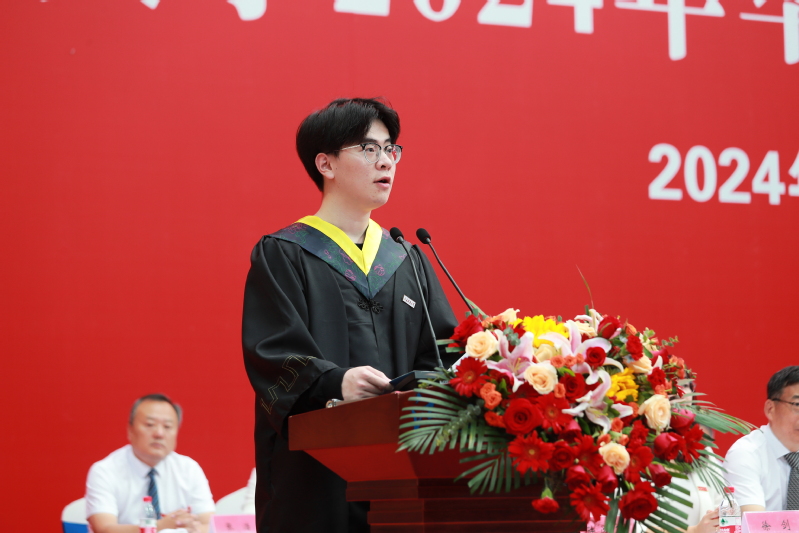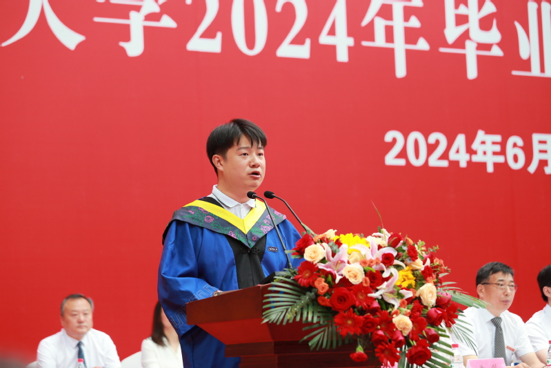 教職工代表、科學技術研究院副院長李陽祝賀各位同學順利畢業,希望大家立大志、做大事,顧大局、講格局,素心做人、用心做事,信心滿懷書寫青春之歌、報國之曲。