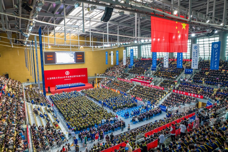 鳳凰花開,驪歌縈耳。6月18日上午,江蘇科技大學2024年畢業典禮暨學位授予儀式閃亮啟幕。4558位本科同學、1562位博碩士研究生同學和151位來自33個國家的留學生接受導師團撥穗正冠,共上大學“最后一課”,懷揣殷殷囑托和深深祝福奔赴山海,續寫人生新篇章。學校為每位畢業生送上“獨家畢業禮物”——一盞復刻學校地標建筑的紙雕夜燈,寓意母校的溫暖光輝將一直為學子們照亮錦繡前程。18日還是25位畢業同學的生日,學校特別準備了禮物,祝他們畢業和生日“雙份”快樂。