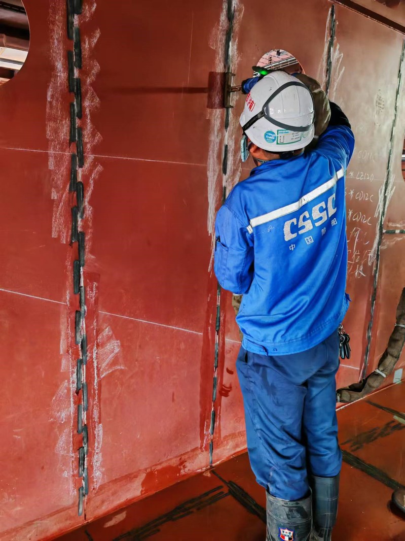 針對當(dāng)前船舶樣板樣箱制作過程效率低、勞動強(qiáng)度大、精度低等問題,谷家揚(yáng)、許靜團(tuán)隊與上海外高橋造船有限公司開展聯(lián)合研究,研制出了QHZY-600-B/X型激光數(shù)控樣板智能切割裝備。該裝備可根據(jù)設(shè)計圖紙自動生成切割路徑,切割效率相較傳統(tǒng)人工作業(yè)提高5倍以上;針對不同板厚、材質(zhì)進(jìn)行切割工藝參數(shù)精準(zhǔn)匹配,提高切割質(zhì)量和切縫光滑度;可實現(xiàn)切割-吸附一體化作業(yè),降低切割現(xiàn)場煙塵濃度,改善作業(yè)環(huán)境。同時,通過數(shù)值計算與現(xiàn)場實驗相結(jié)合獲取軍船船體中薄板結(jié)構(gòu)的變形情況,結(jié)合薄板材質(zhì)、板厚、環(huán)境數(shù)據(jù)等參數(shù),制定了專門的薄板矯平工藝。根據(jù)軍船艙室狹小、結(jié)構(gòu)復(fù)雜的特點,研制了專門的薄板矯平成套裝備,薄板矯平效率較傳統(tǒng)水火矯平提升5倍以上,成功應(yīng)用于中船黃埔文沖船舶有限公司XX4型艦船和某型海警船。