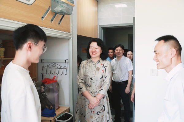 在長山校區,校領導一行走訪新生宿舍。周南平詳細了解新生入校后的各項服務保障條件,特別是新生入住后的適應情況,叮囑隨行相關部門要認真聽取學生心聲,進一步細化各項服務舉措,努力讓大家感受到江科大這個“新家”的溫暖。