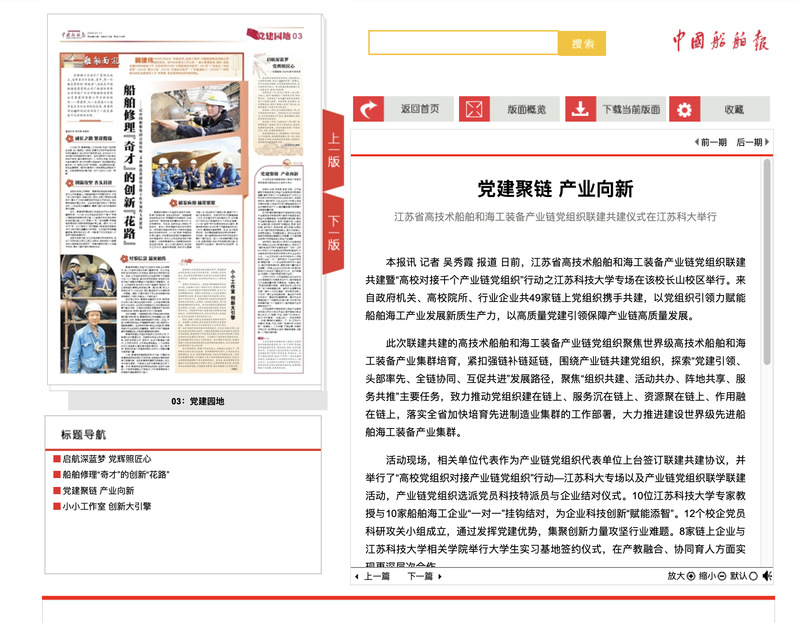 江蘇省高技術船舶和海工裝備產業鏈黨組織由江蘇科大和江蘇省工信廳船舶處聯合牽頭成立,以“黨建+產業+創新”為工作主線,踐行“我們都是‘一條船上的人’,共生共榮的‘一條船’精神的價值理念。下一步,江蘇科大將圍繞“黨建+產業+創新”“黨建引領,科技創新” “黨建育人,人才共融”不同主題,開展針對性工作、組織特色化活動,賦能黨建鏈、創新鏈、人才鏈協同發展。