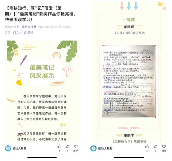 在學風建設過程中,學院高度重視學生學習習慣和方法的培養(yǎng)。為鼓勵學生以筆為友、以學為樂,舉辦“筆耕知行、厚‘記’薄發(fā)”最美筆記比賽,征集學生在課程學習中的精彩筆記作品,展現(xiàn)能動學子嚴謹認真的學習態(tài)度與良好的知識歸納能力。優(yōu)秀作品在學院微信公眾號進行展示推送,形成榜樣引領、學習交流、文化傳播的三重效應,為濃厚學風注入源源不斷的內(nèi)驅動力。